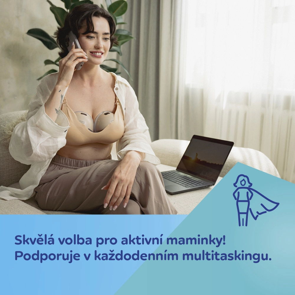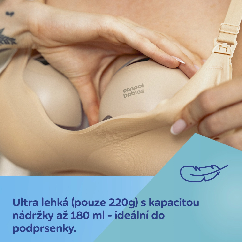 Conception mains libres discrète à porter dans le soutien-gorge, niveau sonore jusqu’à 50 dB, poids de seulement 220 g et réservoir de 180 ml. Idéal à la maison, au travail et en voyage.