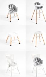 Chaise haute, petit fauteuil, rehausseur, assise sans pieds, tabouret de bar et tabouret bas – une solution qui grandit avec l’enfant tout en économisant de la place et de l’argent.