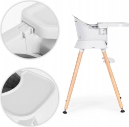 La chaise ECOTOYS 6‑en‑1, à la fois élégante et pratique, s’adapte parfaitement aux rituels du quotidien – des premières purées aux repas autonomes et aux moments de jeu. Grâce à sa conception réfléchie, elle se transforme aisément en chaise haute, fauteuil bas, assise/rehausseur pour une chaise classique, assise sans pieds, tabouret de bar ou tabouret bas. L’assise soigneusement profilée avec coussin moelleux et repose‑pieds favorise une position ergonomique.