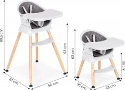 Chaise haute pour enfants 6‑en‑1 avec housse matelassée et plateau, gris ECOTOYS