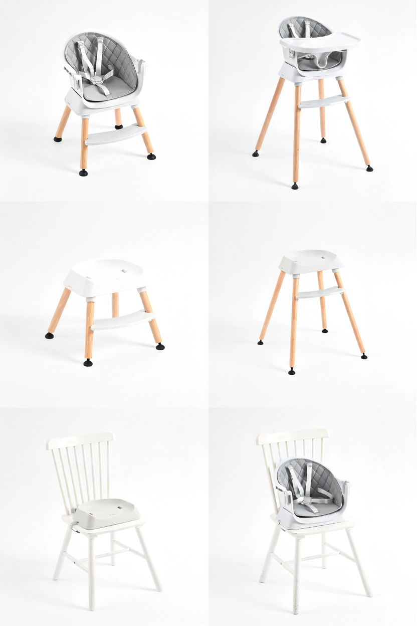 6‑en‑1 : chaise haute, petit fauteuil, rehausseur, assise sans pieds, tabouret de bar, tabouret bas
