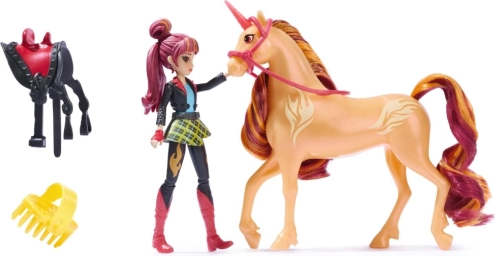 Valentina dispose de 7 articulations, tu peux donc aisément la positionner pour des scènes d’action ou d’équitation. Cinder est équipé d’une selle et d’une bride amovibles pour une chevauchée stable, ainsi que de deux accessoires magiques transparents qui se fixent sur les jambes. Grâce à la brosse, sa crinière abondante restera toujours soignée et prête pour de nouvelles aventures.