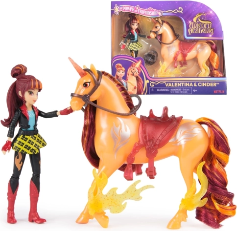 Le coffret UNICORN ACADEMY Valentina et Cinder apporte dans la chambre des enfants un monde de fantaisie inspiré de la série populaire de Netflix et de la saga littéraire à succès. Des détails réalistes, des motifs métallisés de magie du feu et une poupée articulée permettent de créer ses propres histoires pleines de courage et d’amitié.