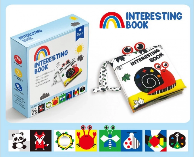 Le livre est fabriqué à partir de matériaux sûrs adaptés aux tout-petits et est en même temps facile d’entretien. Il aide les enfants à apprendre les couleurs et les formes, tout en développant la concentration et la coordination œil–main.