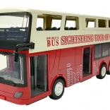 Le pack comprend une batterie rechargeable 4,8 V et un chargeur USB, pour que le bus soit rapidement prêt à rouler. Les garde-corps fournis permettent de transformer facilement l’étage supérieur en bus panoramique cabrio ouvert. Les pneus en caoutchouc souple offrent une bonne traction et un roulement silencieux sur diverses surfaces.
