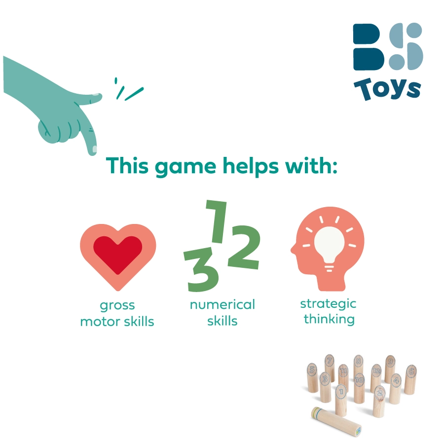 Grâce à des règles simples, toutes les générations peuvent participer. Mölkky développe la motricité, la précision, la concentration et la pensée tactique, tout en favorisant le calcul et le travail avec les nombres. Léger et facile à transporter, l’ensemble est parfait pour les sorties, les vacances et les après-midis au jardin.