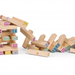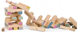 - 48 blocs en bois (env. 15 × 4 × 2,5 cm), 1 dé à lancer (env. 3 cm)