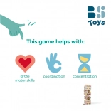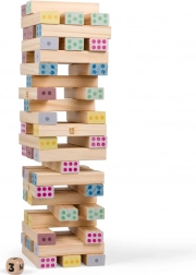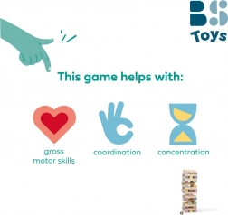 Jeu d’adresse type Jenga pour 2 à 10 joueurs dès 4 ans, qui combine suspense et apprentissage des nombres. Les joueurs lancent le dé et retirent des blocs selon le résultat – un bloc, ou deux dont la somme correspond au chiffre obtenu. Le but est de maintenir la tour en équilibre tout en développant les compétences numériques, la motricité, la coordination œil-main, la concentration et la patience.