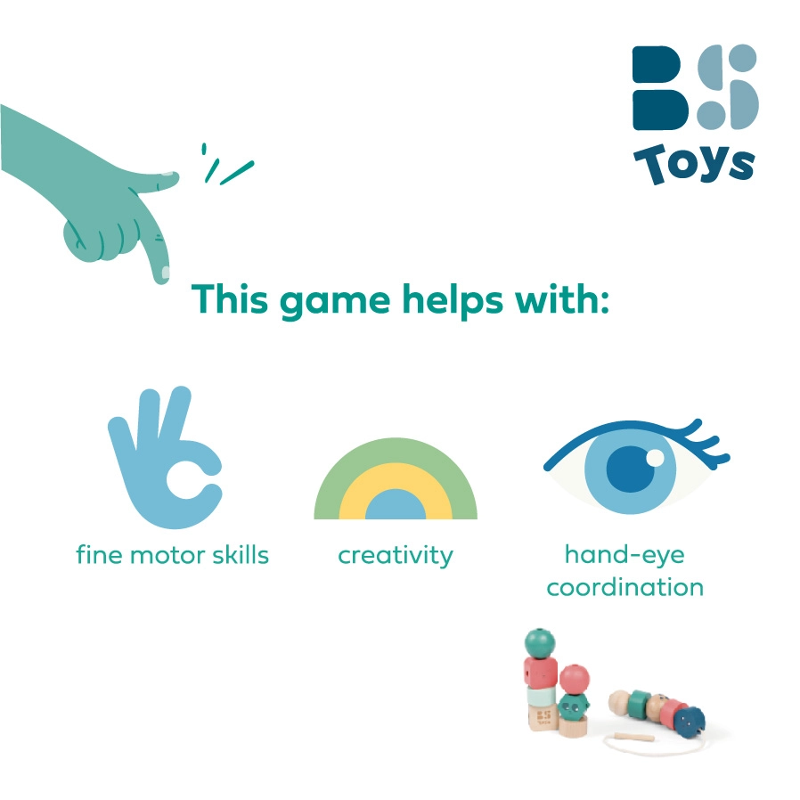 Découvrez un jeu moteur ludique qui amène naturellement les enfants à entraîner leur dextérité et leur patience. De grandes perles en bois de formes et de couleurs variées se saisissent facilement et s’enfilent sur un cordon muni d’extrémités en bois. Cette activité stimule le développement de la motricité fine, la coordination œil-main et la reconnaissance des couleurs.