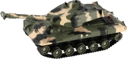 Tank RC avec effets sonores réalistes et tourelle rotative, idéal pour les batailles de guerre. Le tank fonctionne sur la fréquence de 27 MHz, est fabriqué en plastique durable et est alimenté par un pack de batteries rechargeable qui offre 10-15 minutes de plaisir par charge.