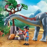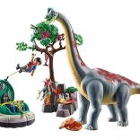 Le Brachiosaure possède une mâchoire articulée et des détails réalistes, l’arbre propose des feuilles amovibles pour un nourrissage interactif. Le set inclut aussi des « trésors cachés », par exemple une libellule emprisonnée dans l’ambre, des outils, des cordes, des filets et de l’équipement de recherche, y compris un ordinateur portable pour documenter les comportements.