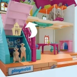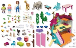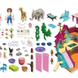 Cette joyeuse villa à deux étages est le cœur de vie d’une amoureuse des animaux, de ses enfants et de leurs amis à fourrure. Dans la maison et le jardin, vous trouverez une multitude d’éléments de jeu : toboggan, véranda, tourelle, escalier et grotte douillette sous les marches. Le petit éléphant adore se balancer, la girafe chipe malicieusement des friandises sur la table et des ratons laveurs s’amusent dans le grenier.