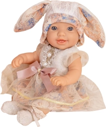 Adorable poupée bébé de la marque WOOPIE qui ravira chaque petite personne attentionnée. Grâce à sa taille compacte de 24 cm, elle tient parfaitement dans les petites mains d’enfant, possède des traits réalistes, un doux sourire et porte une robe pastel avec des détails. Un bonnet doux avec de longues oreilles de lapin ajoute encore plus de charme. Jouer avec le bébé développe l’empathie, l’imagination et le sens des responsabilités – un cadeau idéal pour la maison comme pour les déplacements.