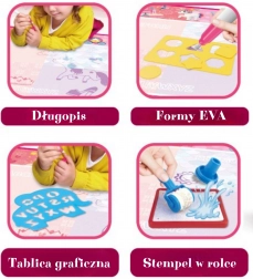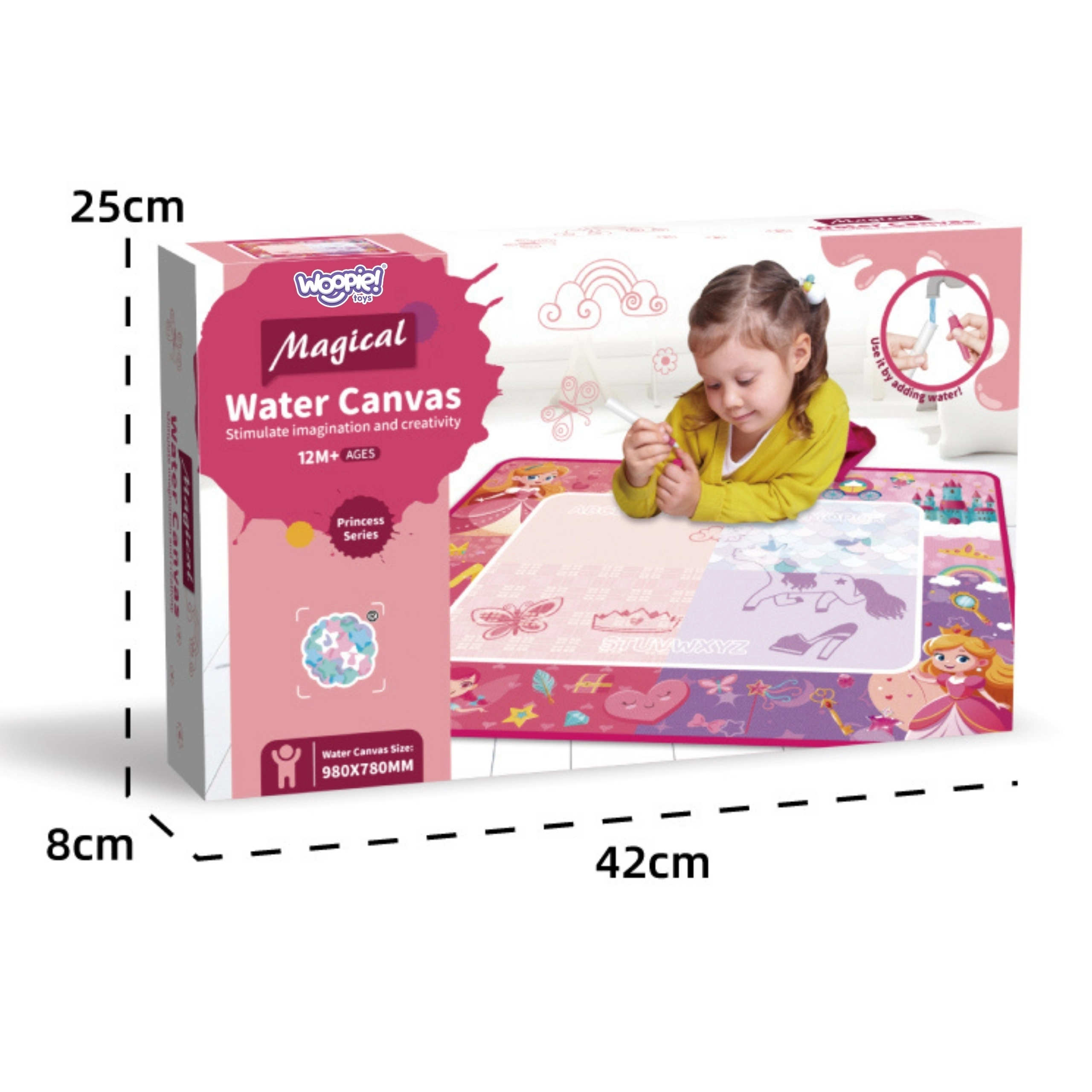Le tapis à eau WOOPIE est le choix idéal pour les parents qui recherchent un divertissement propre et sûr sans peinture ni taches. Il suffit de remplir les feutres d’eau et de commencer à dessiner – les motifs colorés disparaissent en séchant, rendant le tapis réutilisable. Le thème des princesses stimule l’imagination et crée un environnement inspirant pour un apprentissage ludique.