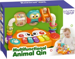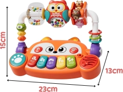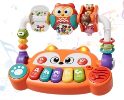 Vous cherchez un jouet qui divertit bébé tout en soutenant son développement dès les premiers mois ? Le piano interactif de la marque Woopie en forme de renard mignon combine musique, lumière, couleurs et mouvement. Il propose 5 touches musicales (Do, Ré, Mi, Fa, Sol), des effets lumineux LED synchronisés avec les sons et des éléments rotatifs avec hochets pour stimuler les sens. Grâce à sa conception sûre en matériaux non toxiques et à ses boutons faciles à presser, il est idéal pour les petites mains et favorise le développement sensoriel, musical et cognitif.