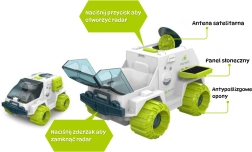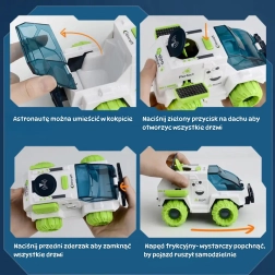 Ce rover spatial futuriste séduit par sa carrosserie blanche avec des éléments verts contrastants et des détails réalistes inspirés des véhicules d’exploration. La cabine transparente et ouvrante permet d’installer confortablement l’astronaute au volant, tandis que le radar interactif se déploie automatiquement en appuyant sur le bouton situé sur le toit et se rétracte en pressant le pare-chocs avant.