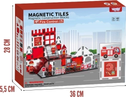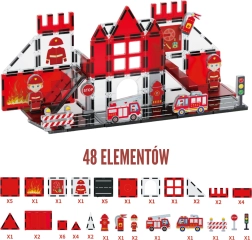 - 48 pièces magnétiques incluant des panneaux et des éléments sur le thème des pompiers