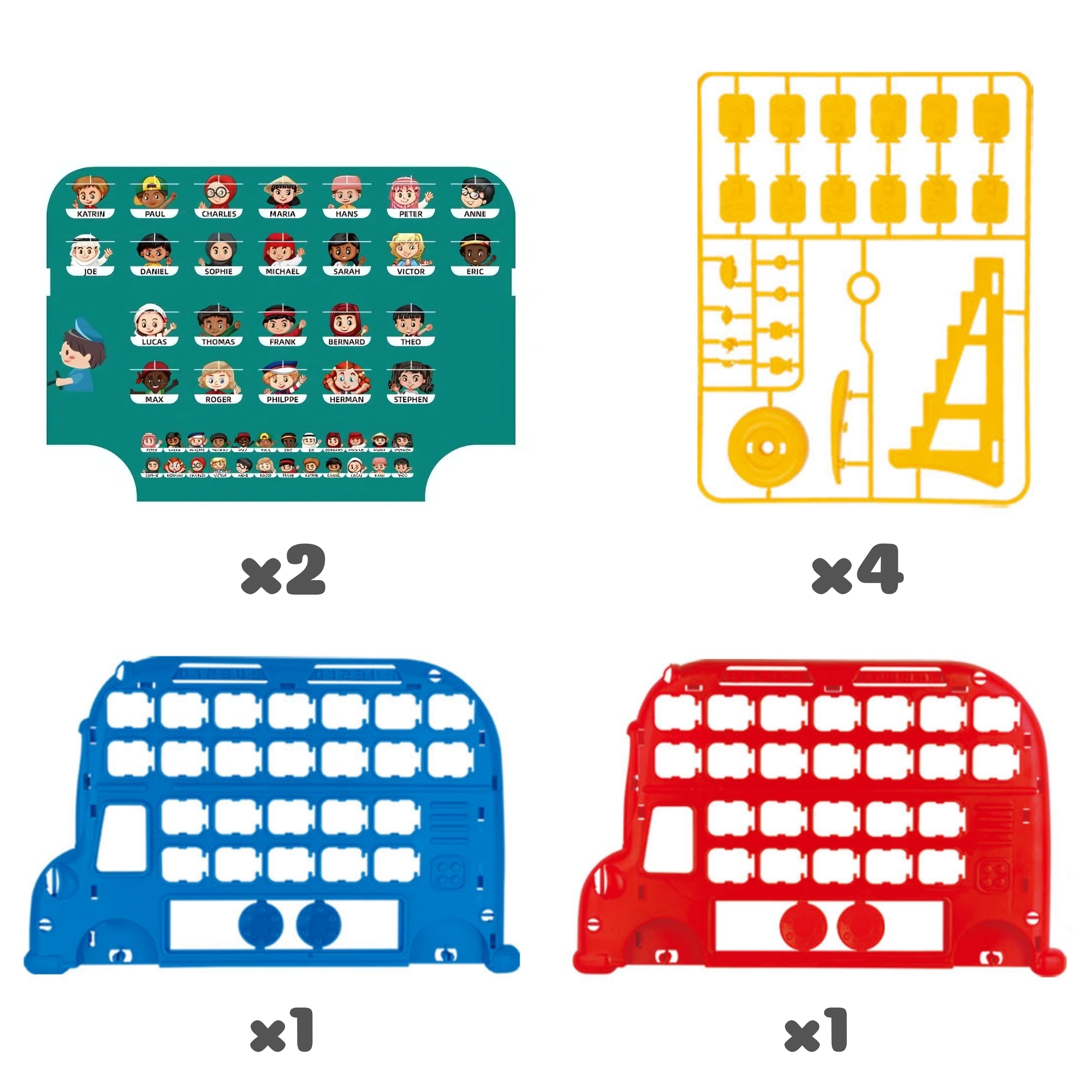 Découvrez un divertissement familial rafraîchissant avec Woopie Qui est-ce. Deux plateaux de jeu stables en forme de bus, des fenêtres bien lisibles et des cartes d’insertion recto-verso (personnages et animaux) font de ce jeu un excellent outil pour le développement de la logique, de la concentration et des compétences linguistiques. Des règles simples accessibles même aux plus petits et, grâce à sa conception mécanique, aucune pile n’est nécessaire.