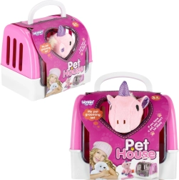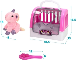 Adorable set pour les petits amoureux des animaux : une maison portable avec une licorne en peluche rose et une brosse de soin. L’enfant peut emmener son animal partout – à la maternelle, en promenade ou en voyage. Porte transparente en forme de cœur pour regarder à l’intérieur, poignée pratique pour un transport facile et licorne en peluche toute douce pour câliner et stimuler le jeu imaginatif. Ce jouet développe l’empathie, le sens des responsabilités et l’imagination au quotidien.