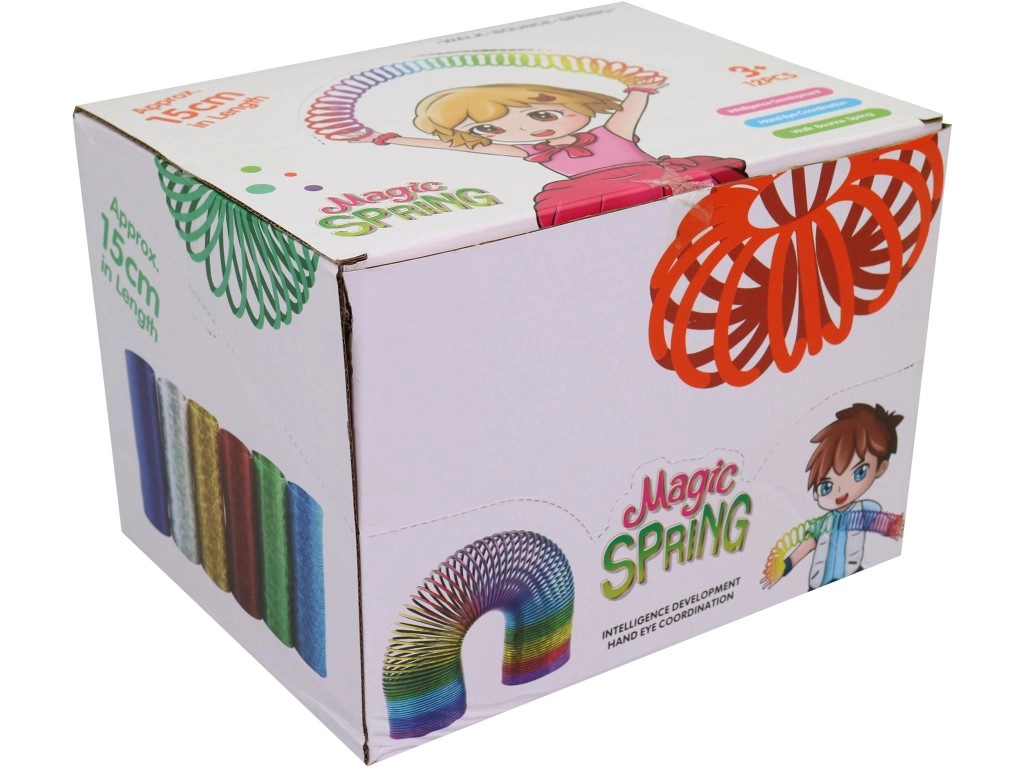 Ce ressort en plastique classique séduit enfants et adultes par sa simplicité et ses possibilités de jeu infinies. Il s’étire facilement et, grâce à son élasticité, “coule” élégamment d’une marche à l’autre. Excellent pour développer la motricité fine et la coordination.