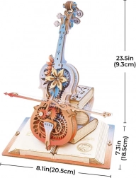 Le Violoncelle magique est une maquette mécanique en bois et une boîte à musique réunies en une seule pièce. Une fois assemblé, l’archet se déplace avec élégance, les engrenages s’animent silencieusement et un lys raffiné tourne à son sommet. L’ensemble repose sur un socle rappelant des livres ouverts – symbole de fantaisie et d’art – qui en fait une décoration exceptionnelle pour le salon, le bureau ou la chambre d’étudiant.