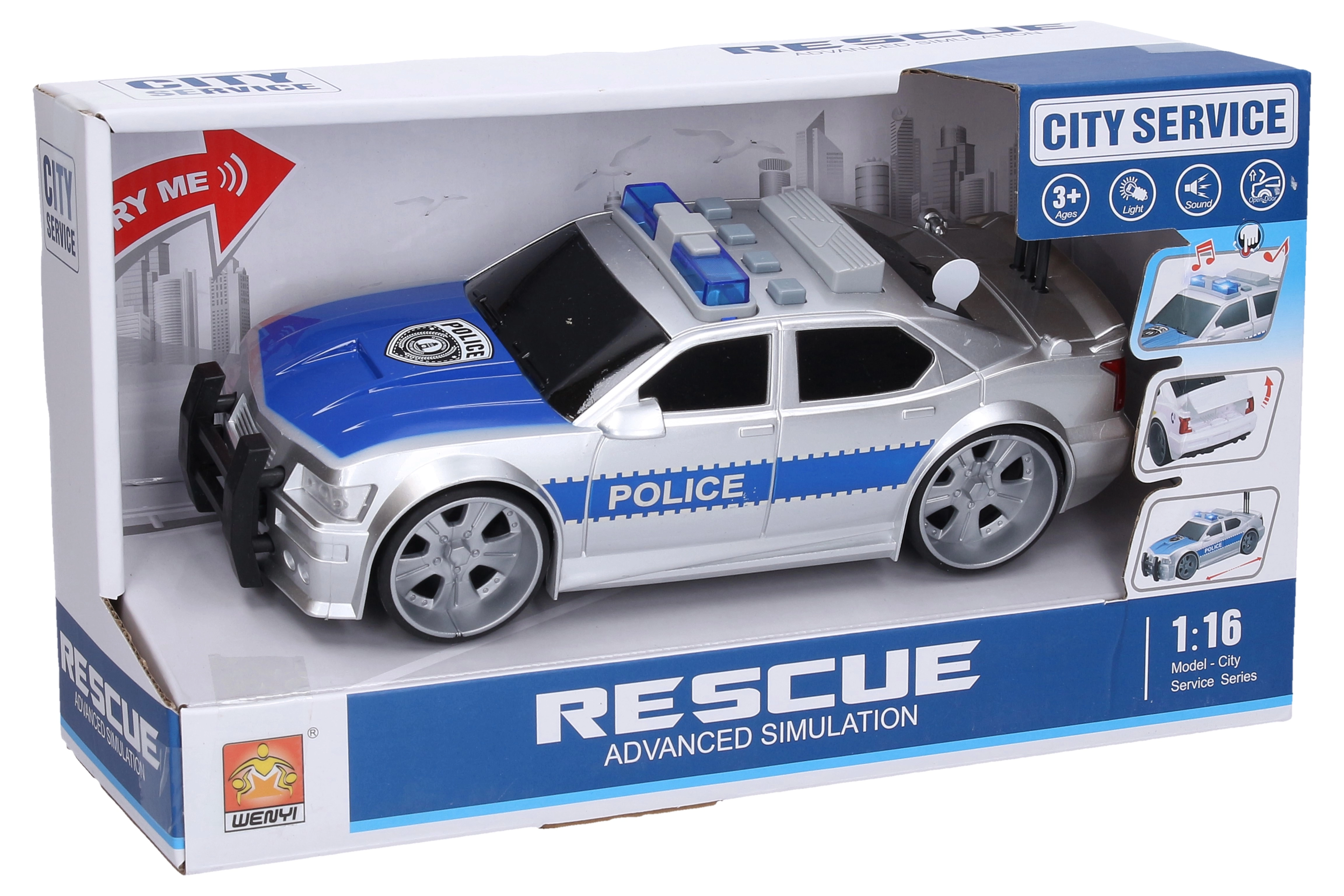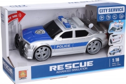 Partez en intervention avec cette voiture de police finement détaillée de 27 cm de long. Grâce au mécanisme à friction, le véhicule se met facilement en mouvement et les effets lumineux et sonores réalistes (moteur, marche arrière, klaxon, gyrophare) renforcent chaque mission. Le capot s’ouvre d’une simple pression sur le bouton situé sur le toit.