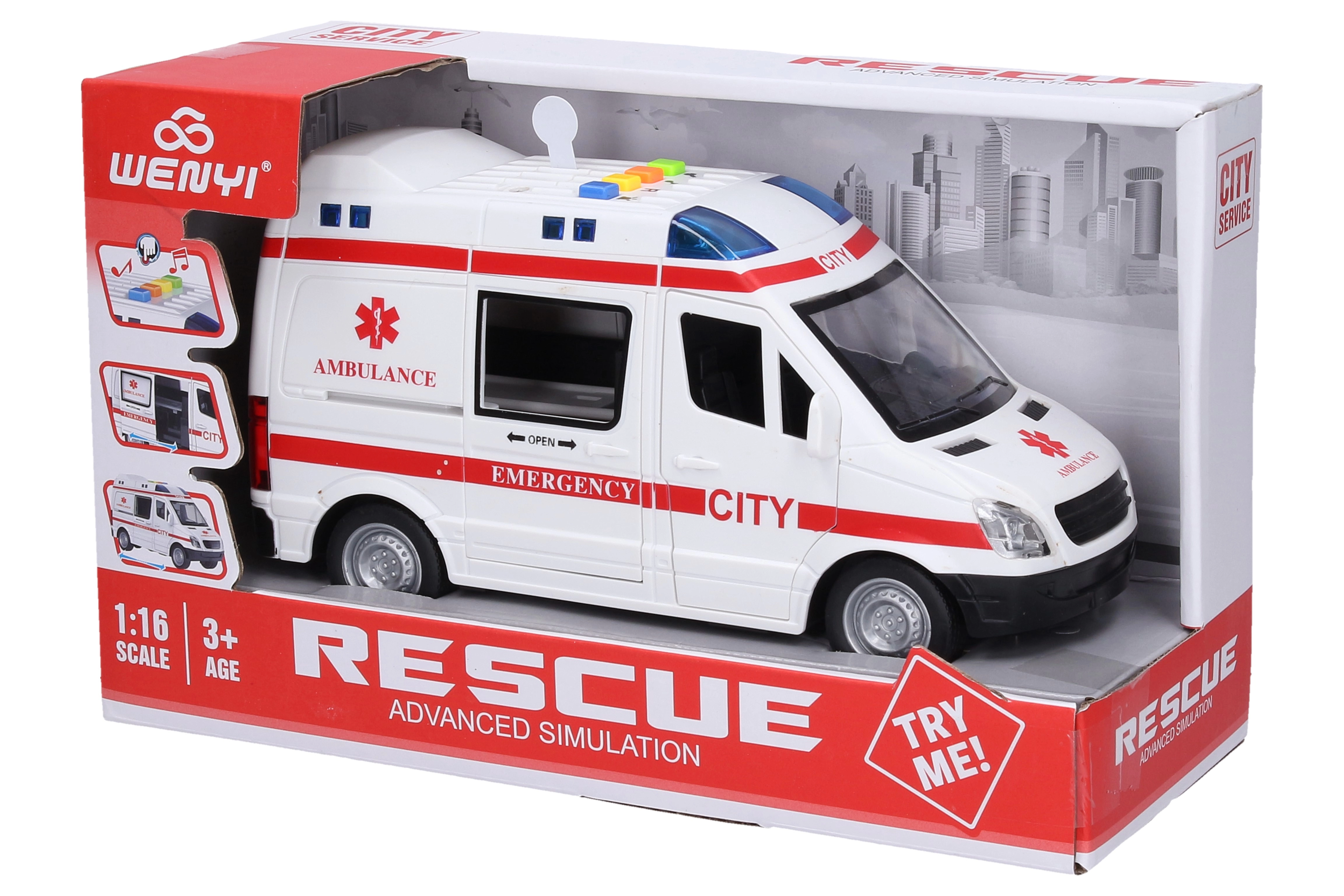 Cette ambulance minutieusement détaillée ravira tous les petits conducteurs et les passionnés de secours. Grâce au mécanisme à friction, elle part facilement en intervention, les lumières et les sons s’activent via les boutons sur le toit et les portes ouvrantes soutiennent des scénarios de jeu réalistes.