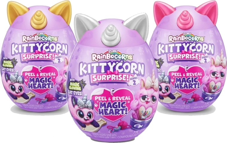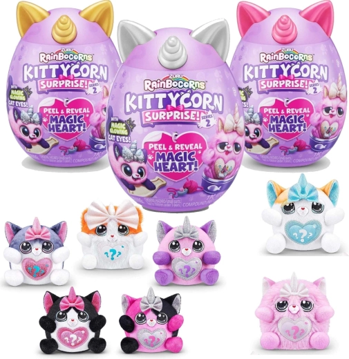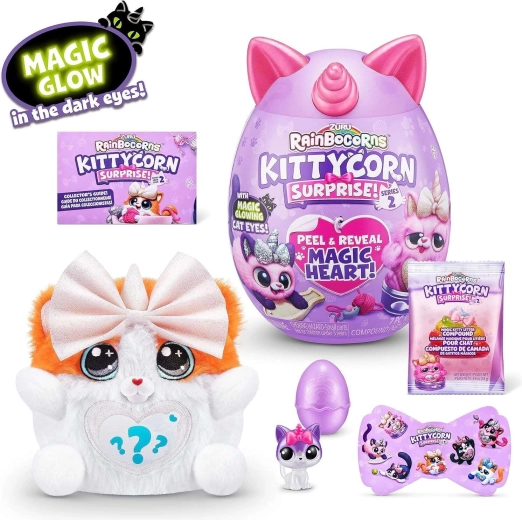 Découvrez le monde magique de RAINBOCORNS KITTYCORN SURPRISE – un chaton en peluche tout doux avec une corne de licorne et des accessoires secrets cachés dans un œuf. Chaque coffret offre la joie du déballage, l’échange d’accessoires et un jeu créatif. Un excellent cadeau pour les enfants dès 3 ans et une collection à collectionner de 7 adorables compagnons.