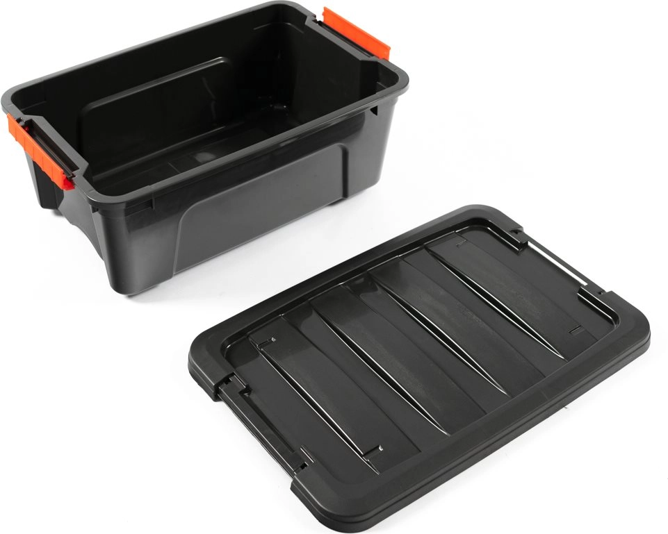 Le couvercle solide protège le contenu de la poussière et permet d’empiler plusieurs boîtes de manière stable.