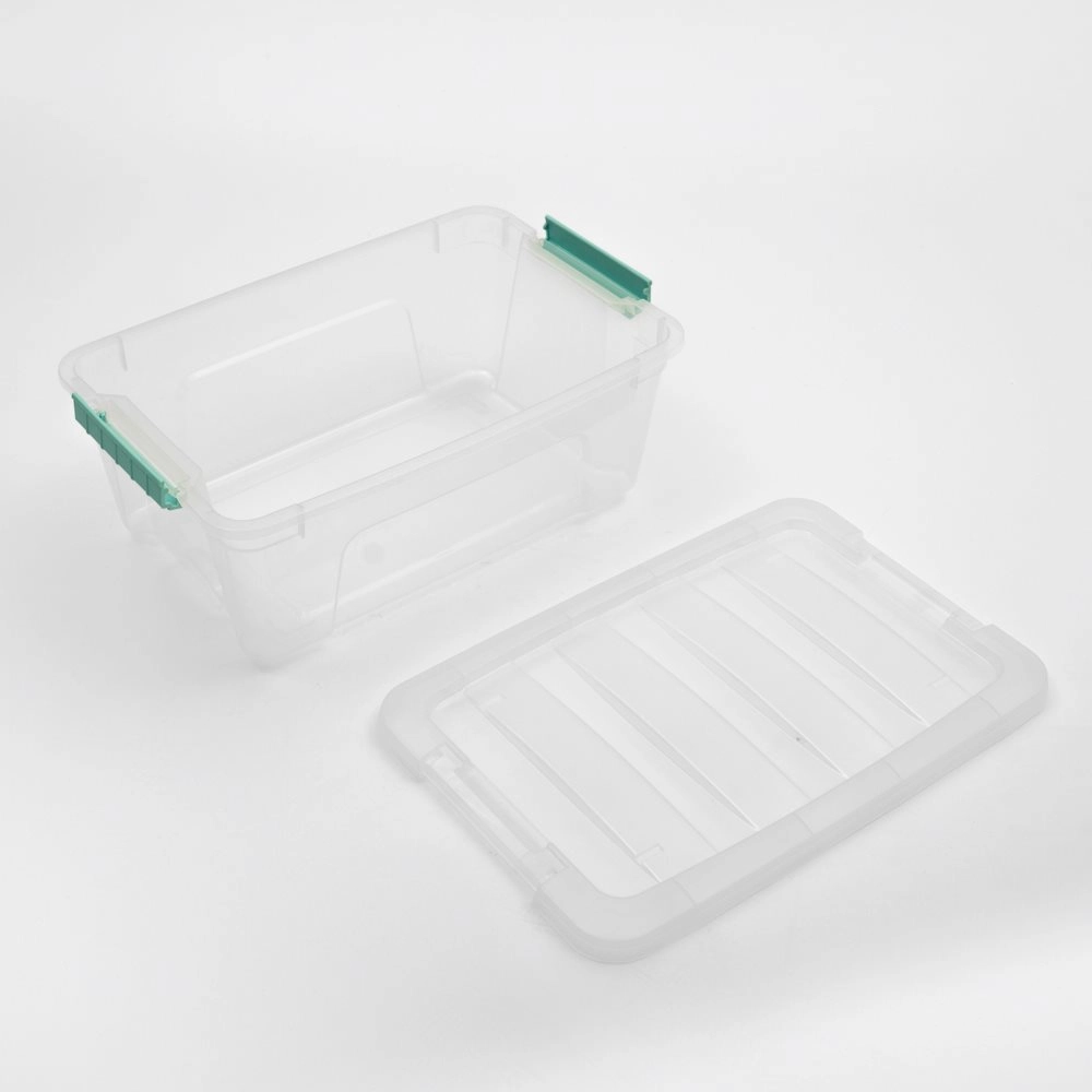 Boîte de rangement en plastique pratique d’un volume de 12 l en version transparente pour un contrôle facile du contenu. Idéale pour les jouets, les jeux de construction, les accessoires saisonniers et les petits objets de la maison. Grâce au couvercle verrouillable, tout reste bien organisé et protégé de la poussière.