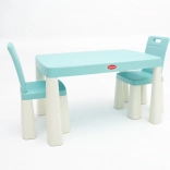 Ensemble pratique et sûr comprenant une table pour enfants et deux chaises en plastique résistant, idéal pour jouer, dessiner et prendre le goûter à la maison comme au jardin. Offre une construction stable, un entretien facile et un design moderne en bleu et blanc. Les chaises peuvent être utilisées avec ou sans dossier pour plus de confort et de flexibilité.