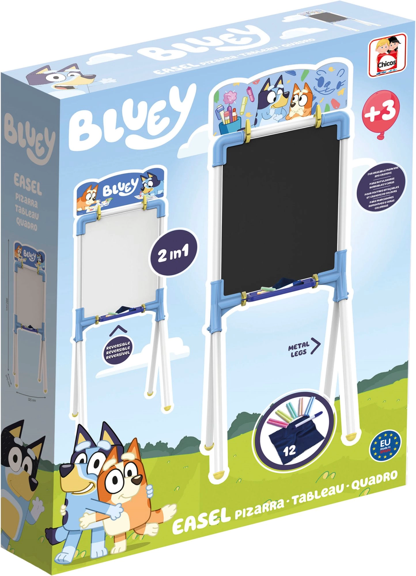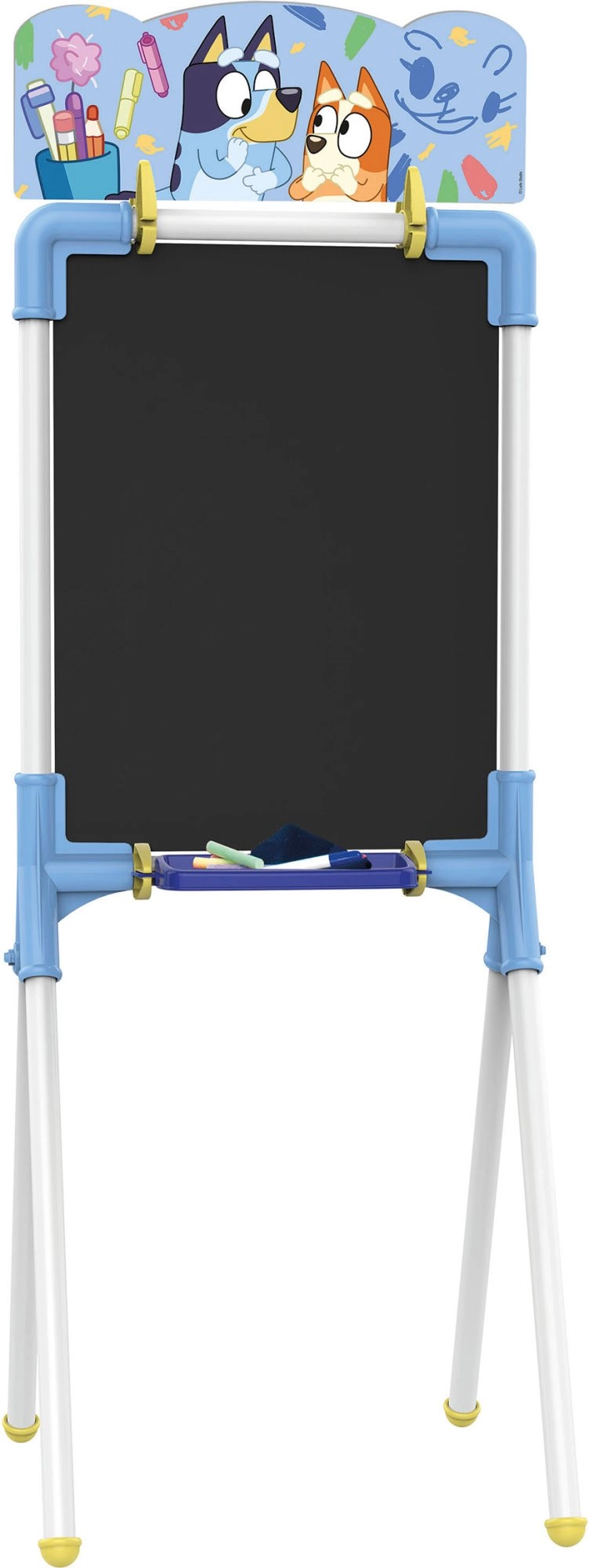 Découvrez un accessoire ludique et pratique pour petits artistes – le tableau double face BLUEY 2-en-1. Un côté est une surface blanche effaçable pour feutre, l’autre est une surface noire classique pour craies. Grâce à sa structure stable, sa tablette de rangement et ses nombreux accessoires, il est idéal pour dessiner, écrire et apprendre.