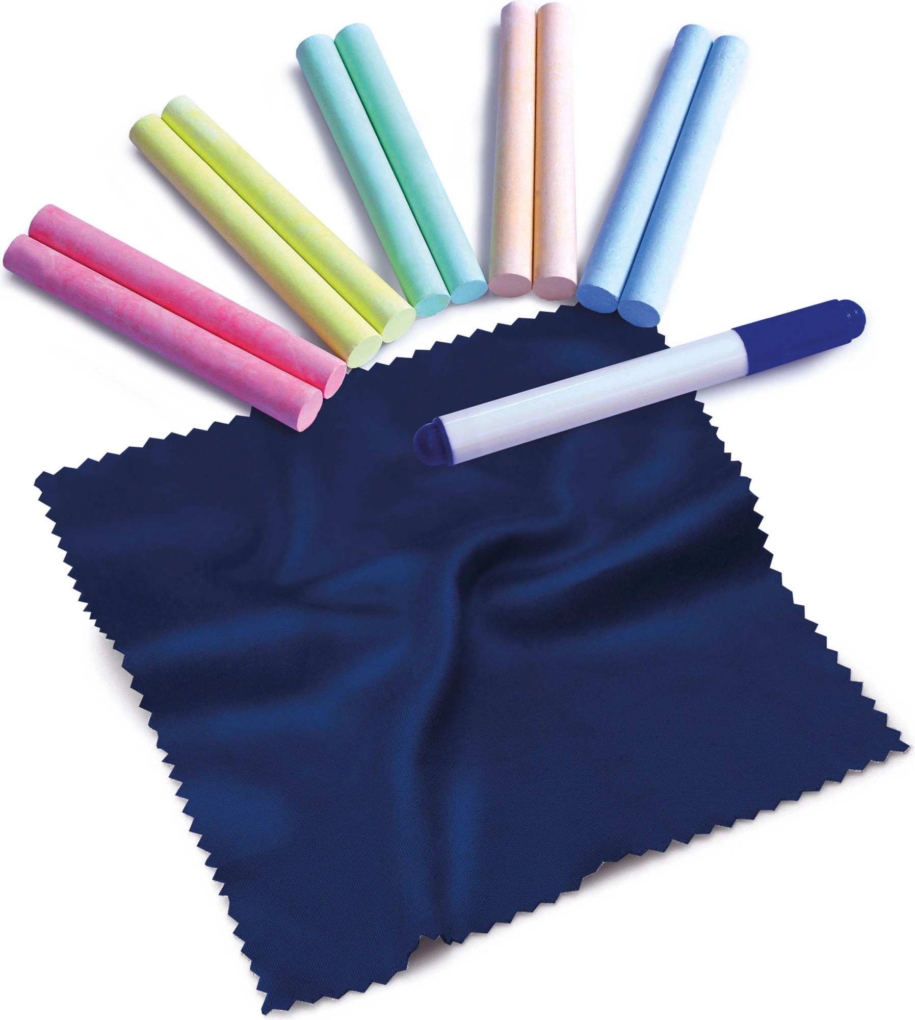 Inclus : une boîte avec 10 craies, 1 feutre noir effaçable et un chiffon d’effaçage – vous pouvez commencer à dessiner dès le déballage.