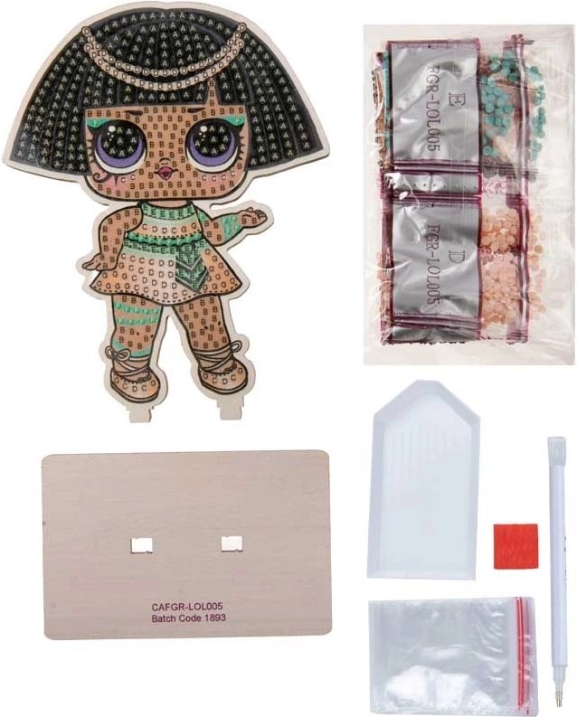 La peinture diamant est un excellent moyen de se vider l’esprit tout en réalisant une décoration originale sur le thème LOL Surprise : Pharaonne. Le procédé est intuitif – prélevez chaque strass avec la cire sur le stylo, puis déposez-le sur la zone marquée. Le résultat est une image spectaculaire et scintillante que vous exposerez aisément grâce au support.