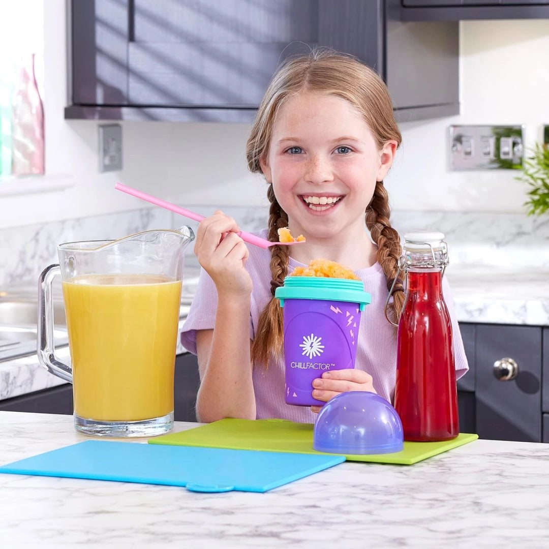 Profite d’une boisson rafraîchissante à tout moment – le CHILLFACTOR Slushy Maker transforme ta boisson froide préférée en granité en quelques minutes. Grâce à un procédé simple, la préparation est rapide et amusante : place le gobelet sans couvercle 8 à 10 heures au congélateur, verse une boisson bien froide, visse le couvercle et presse. En un rien de temps, tu obtiens un granité parfait.