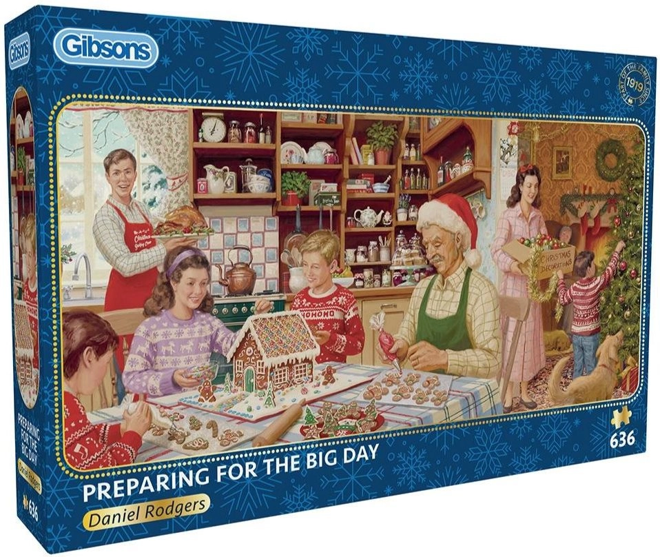 Découvrez le puzzle panoramique de qualité GIBSONS au motif Préparatifs pour le grand jour. Grâce à une découpe précise et à un carton robuste, les pièces s’emboîtent parfaitement, assurant un assemblage fluide et agréable. Le format panoramique se distingue aussi bien sur une étagère qu’au mur.