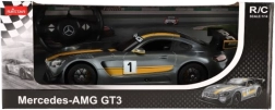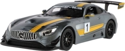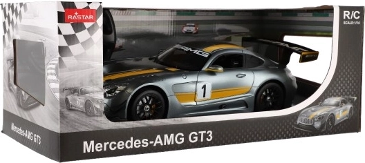 Découvrez le modèle RC MERCEDES-AMG GT3 finement réalisé en gris avec des bandes jaunes et un imposant aileron arrière. Sa carrosserie détaillée se distingue par des lignes sportives et des éléments authentiques d'une voiture de course, de quoi ravir tout amateur de voitures rapides.