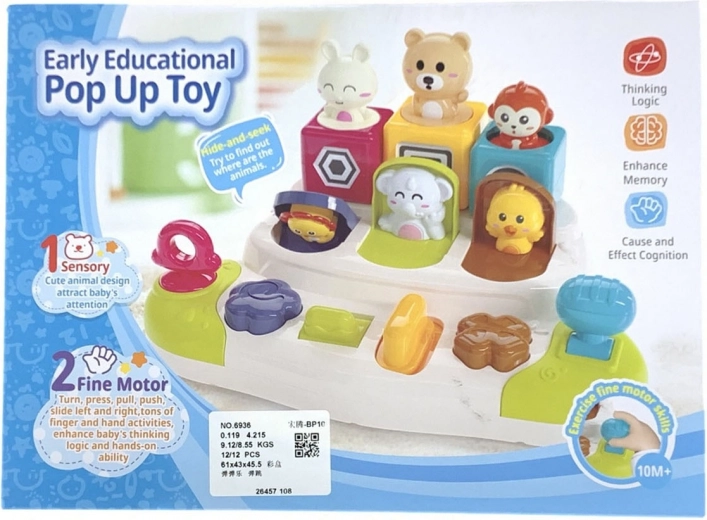 Découvrez le plaisir et l’apprentissage réunis avec ce jouet interactif aux animaux qui surgissent pour les enfants dès 10 mois. Plastique de qualité sans bords tranchants, couleurs vives et personnages joyeux (lapin, ourson, petite singe, lion, éléphant, caneton) développent la motricité fine, les capacités cognitives et le principe cause–effet. L’enfant tire, appuie, fait glisser et tourne les commandes pour ouvrir les volets et faire jaillir les animaux.