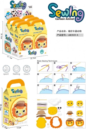 - pièces de matériau en forme de lion, éléments décoratifs, rembourrage, fils, aiguille en plastique, notice