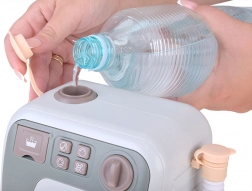 On peut verser de l’eau dans la machine par l’ouverture de remplissage supérieure et, après le “lavage”, la vidanger facilement à l’aide du tuyau muni d’une poignée et d’un bouchon. Les enfants peuvent ainsi tester tout le cycle de lavage comme en vrai.