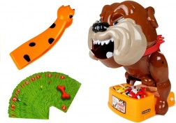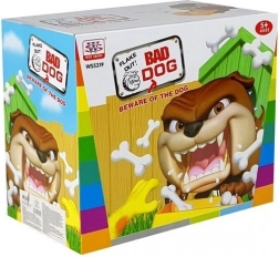 Chien méchant est un jeu de société d’action où les joueurs se relaient pour retirer des os colorés de la gamelle à l’aide d’une pince spéciale. Il suffit de préparer le chien – poussez-le vers l’arrière pour qu’il pose la tête sur la patte et ferme les yeux – et la partie peut commencer. Le plus jeune joueur commence. Si le bulldog bondit, le joueur est éliminé. Gagne celui qui reste le seul à ne pas s’être fait « mordre ».