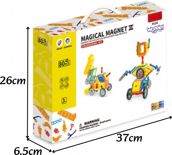 Découvrez un univers créatif avec les blocs magnétiques 3D innovants de la marque WOOPIE. Cet ensemble de 80 pièces permet aux enfants de construire des structures tridimensionnelles, y compris des véhicules de chantier, des robots et des machines. Grâce à des aimants puissants, les modèles sont stables et faciles à assembler, idéals pour les petites mains. Un jouet éducatif STEAM qui stimule la motricité fine, la pensée logique ainsi que les bases de la géométrie et de la physique – apprendre en s’amusant.