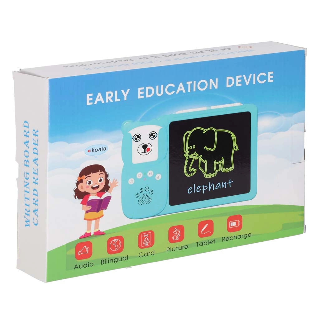 Le lecteur interactif avec tablette LCD développe le vocabulaire, la prononciation et la motricité fine. Il suffit d’insérer une carte et l’appareil joue la prononciation correcte du mot anglais – des catégories sélectionnées (animaux, véhicules) sont enrichies de effets sonores ludiques. Sur l’écran LCD 8", les enfants s’exercent en parallèle à écrire, dessiner et prendre des notes grâce au stylet fourni.