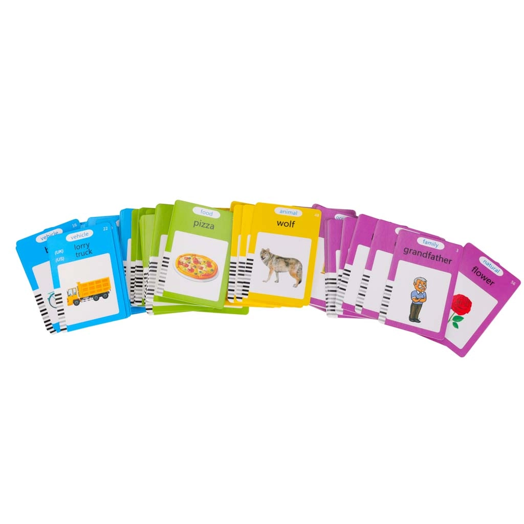 Insérez une carte dans le lecteur et écoutez la bonne prononciation en anglais. Les catégories animaux et véhicules sont accompagnées de sons réalistes pour une mémorisation encore meilleure.
