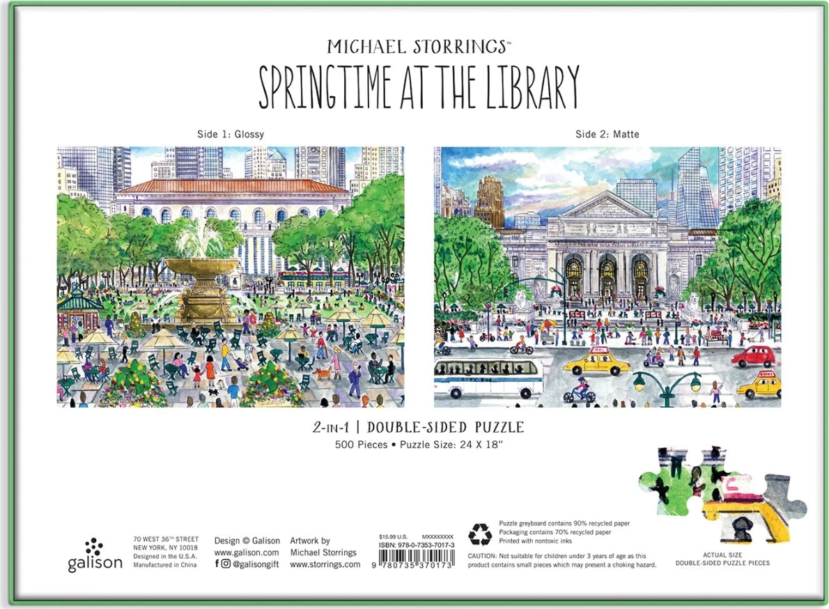 Le puzzle recto-verso GALISON « Springtime at the Library » offre une expérience unique : d’un côté, une scène urbaine animée avec fontaine et parc ; de l’autre, une bibliothèque emblématique et ses environs effervescents. Grâce au double motif, vous obtenez une double portion d’assemblage et une meilleure rejouabilité.