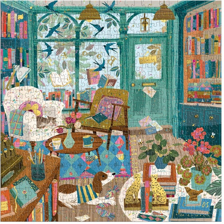 Le puzzle carré métallisé « Après-midi en librairie » allie la douceur de l’assemblage à une expérience visuelle captivante. De subtils éléments métallisés apportent profondeur et éclat à l’illustration, donnant à l’image terminée un rendu raffiné et élégant.