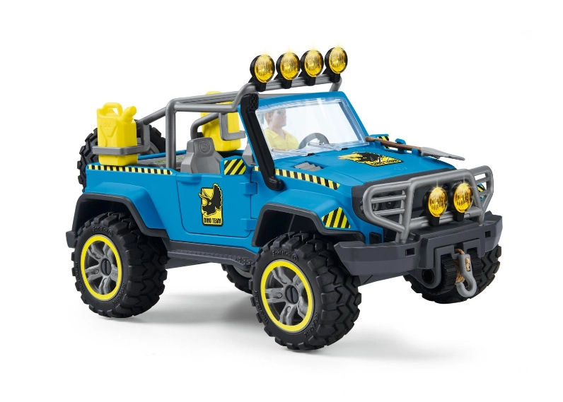 Découvrez un set minutieusement conçu de la série SCHLEICH DINOSAURS, proposant d’innombrables possibilités de jeu. Luis part en mission dans le 4x4 doté d’un treuil fonctionnel, utilise un appât en viande et capture le Giganotosaurus dans un enclos composé d’éléments de clôture. Si le véhicule s’embourbe, il peut facilement changer une roue ou se remettre sur la route grâce à la trousse à outils.