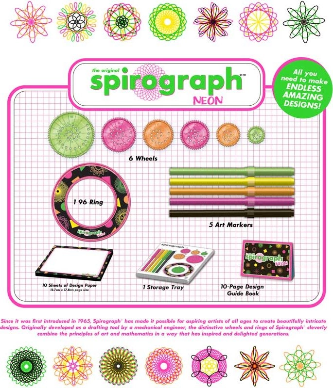 Avec le Spirographe Néon, les enfants créent facilement des motifs géométriques précis, des spirales et des mandalas qu’ils peuvent ensuite colorier. Le set est conçu pour développer la créativité, les capacités de combinaison et la motricité fine de manière ludique.