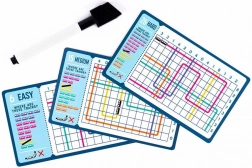 Grâce au stylo effaçable et aux cartes résistantes, vous pouvez résoudre les exercices encore et encore, chercher de nouvelles solutions et comparer vos résultats avec la famille ou les amis. Idéal pour les déplacements, l’attente d’un train ou une pause au travail.