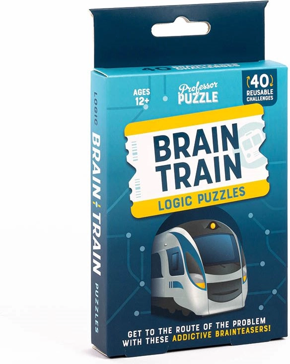 Exercez votre cerveau partout et à tout moment avec l’astucieux coffret d’énigmes logiques BRAIN TRAIN de PROFESSOR PUZZLE. Il comprend 40 cartes réutilisables, un stylo effaçable et un guide – idéal pour les voyages, l’école ou le travail. Un divertissement pour tous les âges et un entraînement rapide à la logique, à l’observation et à la concentration.